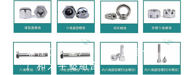 螺栓類:外六角螺栓、外六角法蘭面螺栓、內(nèi)六角圓柱頭螺栓、吊環(huán)螺栓、膨脹螺栓、沉頭內(nèi)六角螺栓、盤頭內(nèi)六角螺絲、馬車螺栓、雙頭螺栓、蝶型螺絲、活節(jié)螺栓、地腳螺 栓、U型螺栓、四角螺栓等 螺帽類:鉚螺母、吊環(huán)螺母、
