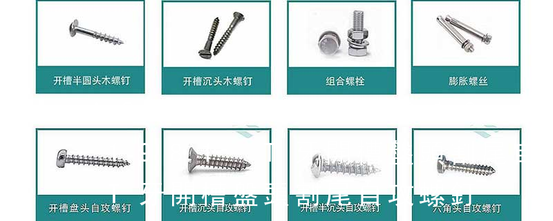 1.機(jī)螺釘 2.自攻螺釘 3.鉆尾螺釘 4.墻板釘 5.纖維板釘 6.木螺釘7.六角木螺釘 8.不脫出螺釘 9.組合螺釘 10.微型螺釘 11.家具螺釘 12.電子螺釘 13.鏈帶螺釘頭型:1.六角頭(hexagon head)2.六角頭法蘭面(hexagon head with