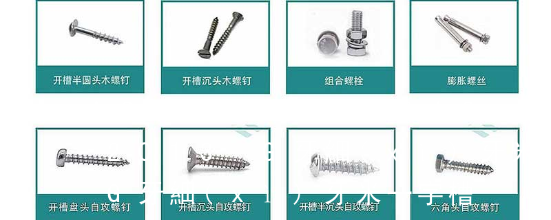 (鐵板牙自攻螺絲) B-2: Plastic Tapping Screw. (塑膠用,自攻螺絲) C: Wooden Screw : 木工螺絲 D: Drywall Screw :水泥墻螺絲 E: Self Drilling Screws鉆尾螺絲(不銹鋼鉆尾螺絲,復(fù)合材料鉆尾螺絲) F:膨脹螺絲,四片膨脹螺絲又
